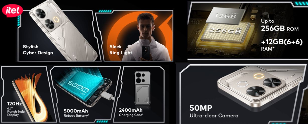 ايتل P65 جوال من المستقبل يتميز بتصميم مختلف مع ليد للاشعارات الجوال مناسب للالعاب بشاشة 120 هرتز و 12 جيجا رام مع بطارية 5000 مللي أمبير